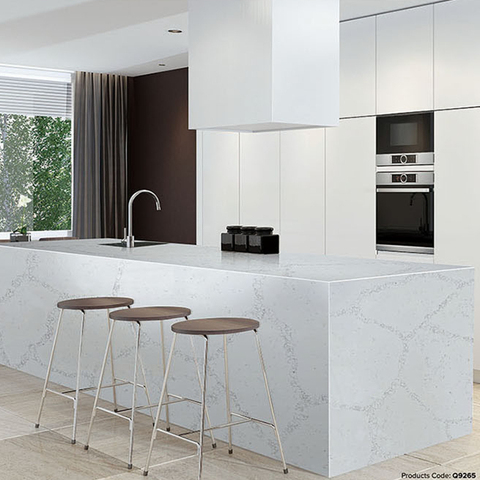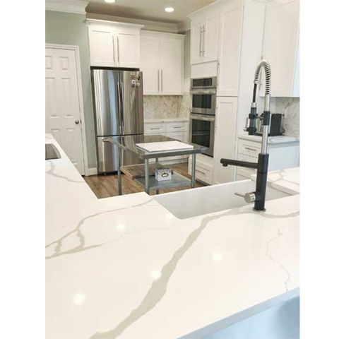 Encimera de cuarzo de estilo vietnamita, encimera de Carrara blanca de cuarzo, encimera de banco, encimera de cocina
