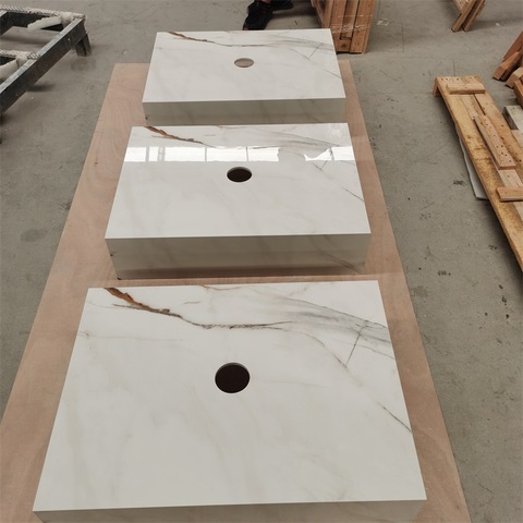 Fregadero de mármol blanco Calacatta de piedra artificial de calidad superior de tamaño personalizado al por mayor lavabo de mármol rectangular lavabo de baño